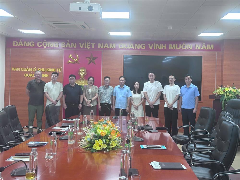 Tham dự buổi làm việc, về phía Ban Quản lý Khu kinh tế Quảng Ninh có ông Trương Mạnh Hùng - Tỉnh ủy viên, Trưởng Ban cùng một số phòng, đơn vị trực thuộc. Đại diện Ban Xúc tiến và Hỗ trợ đầu tư – bà Chu Vân Anh, Phó trưởng Phòng xúc tiến đầu tư. Về phía Đoàn xúc tiến đầu tư Nam Kinh - Trấn Giang, tỉnh Giang Tô, Trung Quốc, gồm: Ông Trần Dương - Thư ký Hiệp hội Thương mại Điện tử xuyên biên giới thành phố Cú Dung, Nam Kinh; ông Đào Siêu Nhiên - Lãnh đạo Công ty TNHH Công nghệ Điện lực Đặc Diệc Giai Nam Kinh; ông Triệu Ninh Viễn - Công ty TNHH Quản lý Thương mại Số một Nam Kinh; ông Ngô Hiển Hồng - Phó Tổng giám đốc Công ty TNHH KCN Hải Hà Việt Nam và các thành viên khác trong Đoàn công tác.