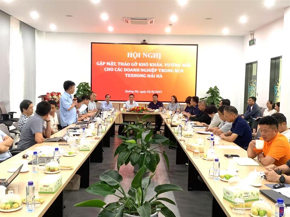 Ngày 05/08/2025, Ban Quản lý Khu kinh tế Quảng Ninh đã tổ chức Hội nghị gặp mặt, tháo gỡ khó khăn, vướng mắc cho các doanh nghiệp trong KCN Texhong Hải Hà tại Khu công nghiệp Hải Hà. Đoàn công tác của Ban Quản lý Khu kinh tế Quảng Ninh, gồm: Ông Trương Mạnh Hùng – Tỉnh ủy viên, Trưởng Ban, ông Châu Thành Hưng - Phó Trưởng Ban, bà Nguyễn Huyền Anh - Phó Trưởng Ban và Trưởng các phòng, đơn vị trực thuộc Ban. Đại diện phía chính quyền địa phương: Ông Nguyễn Đức Thiện - Phó Chủ tịch UBND xã Quảng Hà. Đại diện các doanh nghiệp, nhà đầu tư: Ông Ngô Hiển Hồng - Phó Tổng Giám đốc KCN Texhong Hải Hà, bà Nguyễn Thị Bùi - Tổng giám đốc điều hành đối ngoại kiêm Giám đốc phát triển thị trường năng lượng mới của tập đoàn Texhong tại Việt Nam, ông Trần Minh Siêu - Phó Tổng Giám đốc thường trực Công ty TNHH Texhong Ngân Long trong KCN Hải Yên và gần 30 doanh nghiệp, nhà đầu tư thứ cấp trong KCN Texhong Hải Hà.