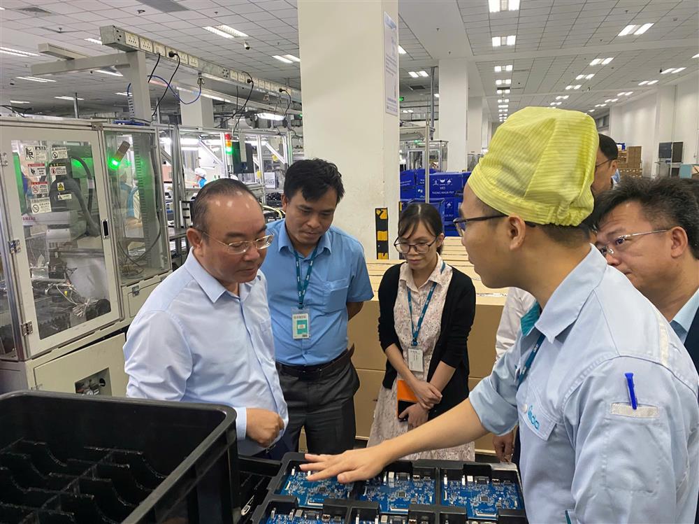 Trong khuôn khổ chuyến công tác, Đoàn đã tham quan và làm việc tại một số khu công nghiệp tiêu biểu của tỉnh Ninh Bình: Khu công nghiệp Đồng Văn IV, Khu công nghiệp Gián Khẩu. Tại khu Công nghiệp Đồng Văn IV, Đoàn đã có buổi làm việc với Tổng công ty Viglacera, Chủ đầu tư hạ tầng Khu công nghiệp, để trao đổi về công tác xây dựng, ứng dụng công nghệ thông tin, trí tuệ nhân tạo AI trong quản lý cơ sở dữ liệu và điều hành hoạt động của Khu công nghiệp; thảo luận, đề xuất các giải pháp phát triển mô hình khu công nghiệp sinh thái – hướng đi đang được nhiều địa phương quan tâm trong bối cảnh chuyển đổi sang kinh tế xanh. Đến tham quan, làm việc với Công ty TNHH QISDA Việt Nam – một trong những doanh nghiệp công nghệ hoạt động hiệu quả tại khu công nghiệp Đồng Văn IV, các thành viên trong Đoàn đã được trực tiếp tìm hiểu quy trình sản xuất, mô hình quản trị tiên tiến và ứng dụng công nghệ trong quản lý, vận hành nhà máy.