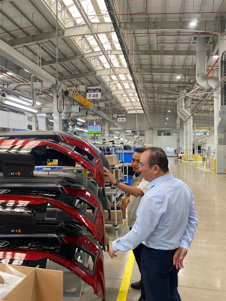(Đoàn công tác tham quan thực tế tại Nhà máy sản xuất ô tô Hyundai Thành Công)
