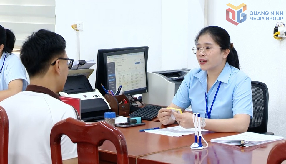 Cán bộ Trung tâm Phục vụ hành chính công phường Mạo Khê hỗ trợ doanh nghiệp thực hiện thủ tục pháp lý.