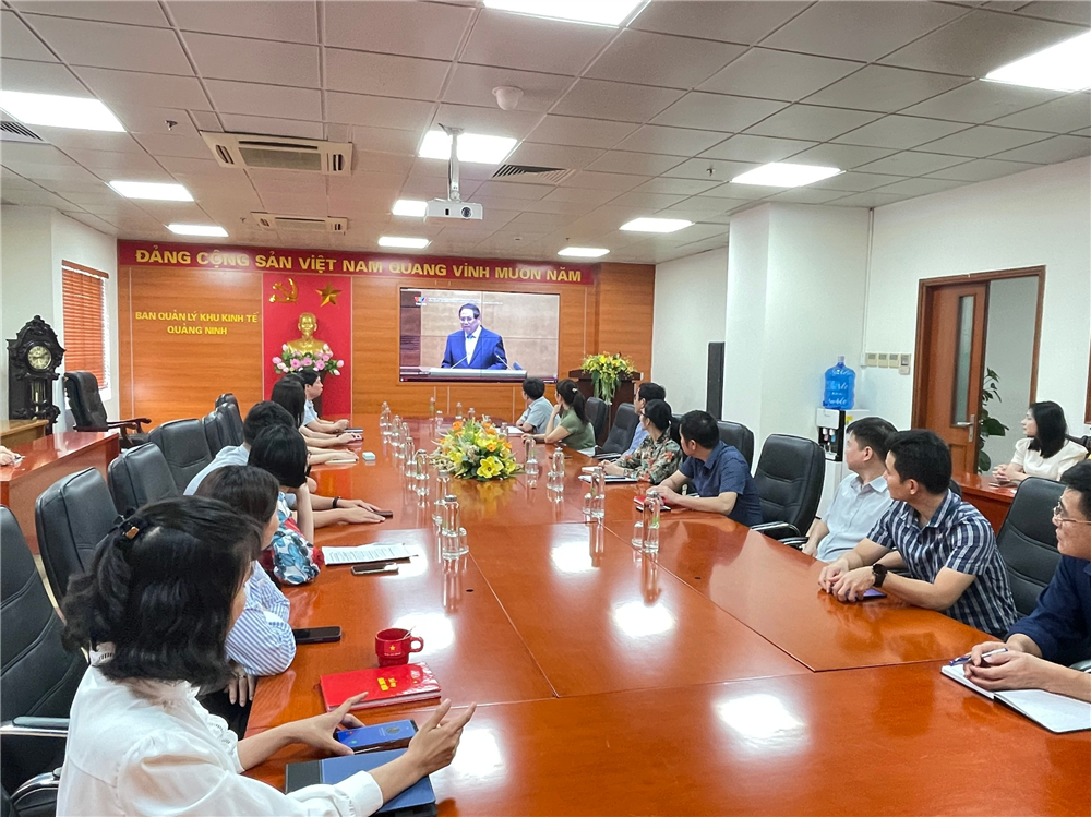 Hội nghị diễn ra theo hình thức theo dõi trực tiếp trên kênh VTV1 Đài Truyền hình Việt Nam tại trụ sở Ban Quản lý Khu kinh tế Quảng Ninh, hội nghị có sự tham dự của các đồng chí trong cấp ủy, trưởng, phó các phòng ban, đơn vị trực thuộc cùng toàn thể cán bộ, đảng viên (đồng chí bí thư, phó bí thư Đảng ủy, lãnh đạo Ban tham dự hội nghị trực tuyến tại điểm cầu Đảng ủy UBND tỉnh)