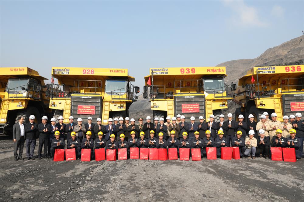 Tổng Bí thư Tô Lâm và Thủ tướng Phạm Minh Chính tặng quà công nhân Tổ máy xúc, Tổ máy khoan, Tổ xe tại Khai trường sản xuất Công ty CP Than Đèo Nai - Cọc Sáu.