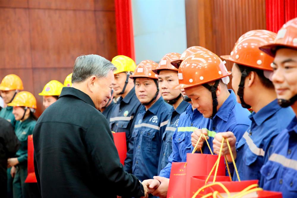 Tổng Bí thư Tô Lâm động viên, tặng quà cho công nhân ngành Than.
