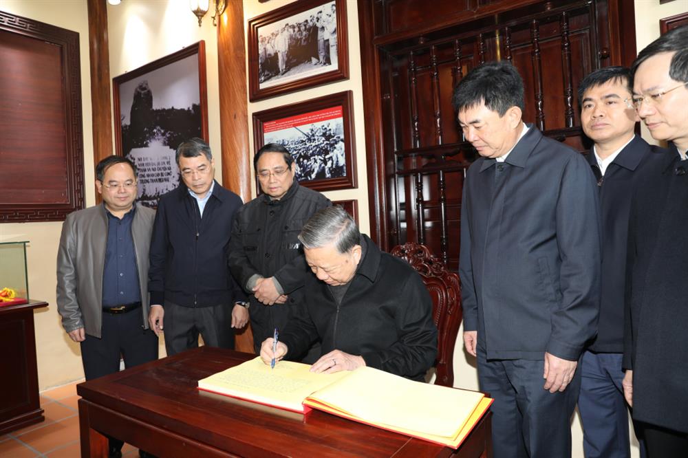 Tổng Bí thư Tô Lâm ghi sổ lưu niệm tại Khu Di tích lịch sử quốc gia Địa điểm lưu niệm Bác Hồ về thăm mỏ Đèo Nai.