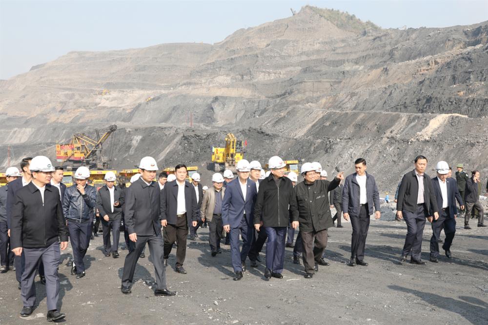 Tổng Bí thư Tô Lâm và Đoàn công tác thăm khai trường khai thác than Công ty CP Than Đèo Nai - Cọc Sáu.
