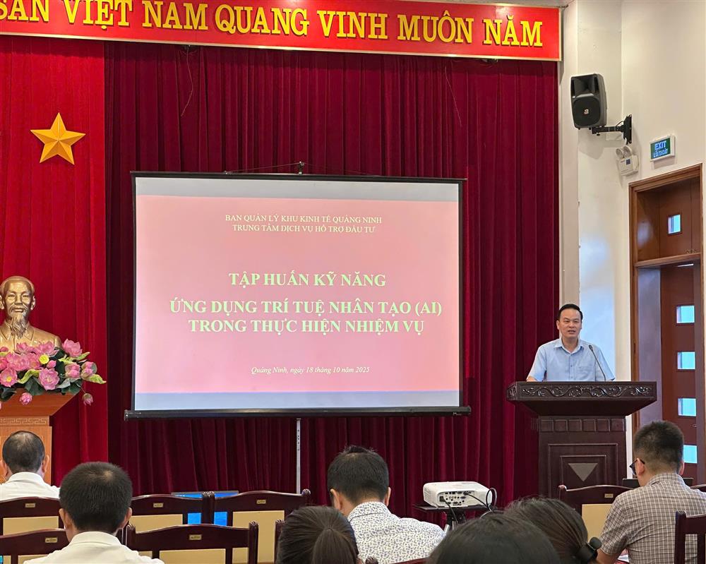 Ngày 18/10, Ban Quản lý Khu Kinh tế Quảng Ninh đã tổ chức tập huấn kỹ năng ứng dụng trí tuệ nhân tạo (AI) để tăng cường nhận thức, kỹ năng khai thác, sử dụng hiệu quả các ứng dụng trí tuệ nhân tạo (AI) trong thực hiện nhiệm vụ của đội ngũ công chức, viên chức, người lao động; tạo nền tảng cho việc xây dựng đội ngũ công chức, viên chức, người lao động có năng lực số, thích ứng nhanh với sự phát triển của khoa học công nghệ, đáp ứng yêu cầu xây dựng chính quyền số, phát triển chính quyền điện tử, hướng tới chính quyền số hiện đại, tinh gọn, hiệu quả; thúc đẩy quá trình chuyển đổi số, cải cách hành chính, nâng cao chất lượng phục vụ các tổ chức, cá nhân và doanh nghiệp.